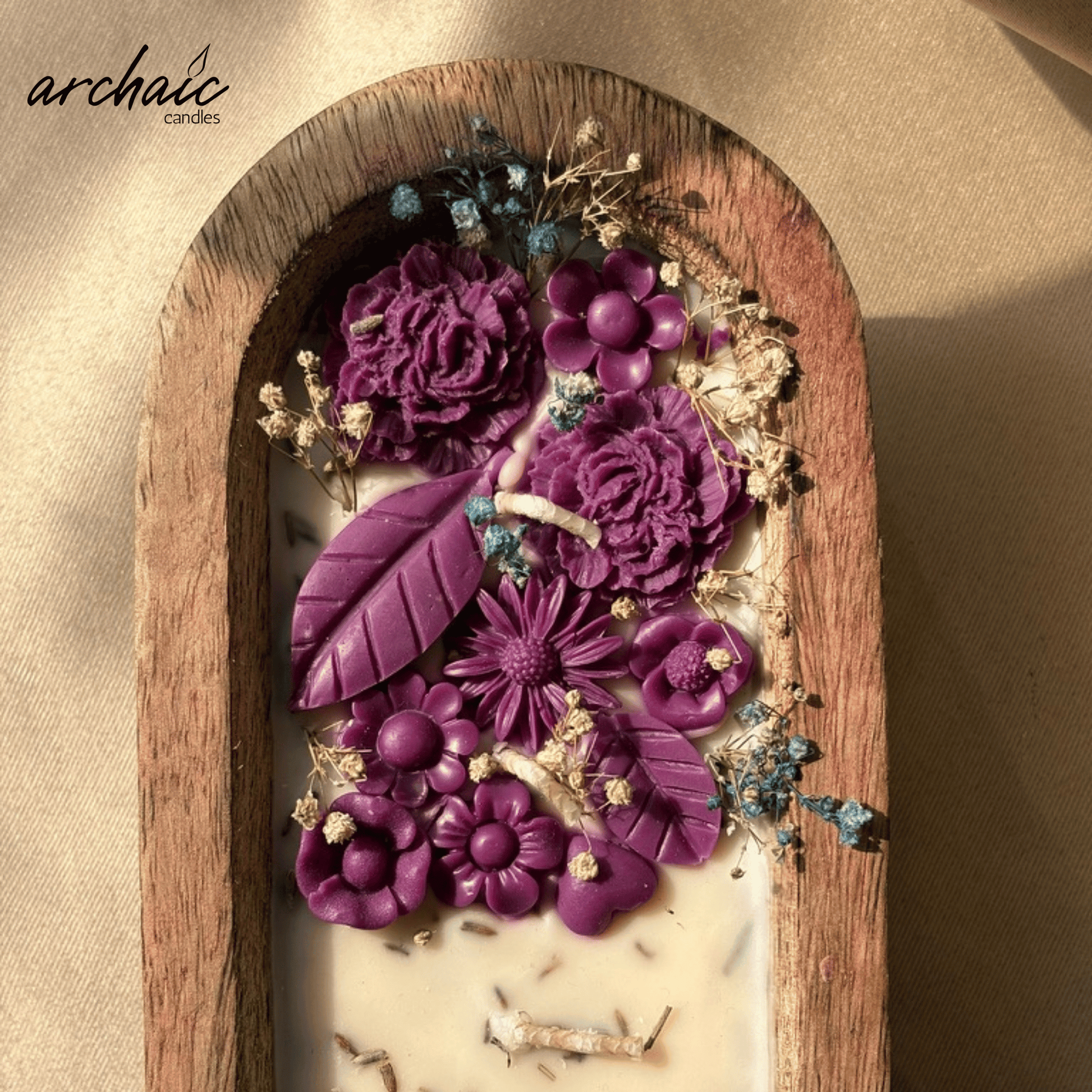 Purple Lavender Wooden Big Boat Candle| Amethyst Tide| Handcrafted Floral Soy Wax Candle