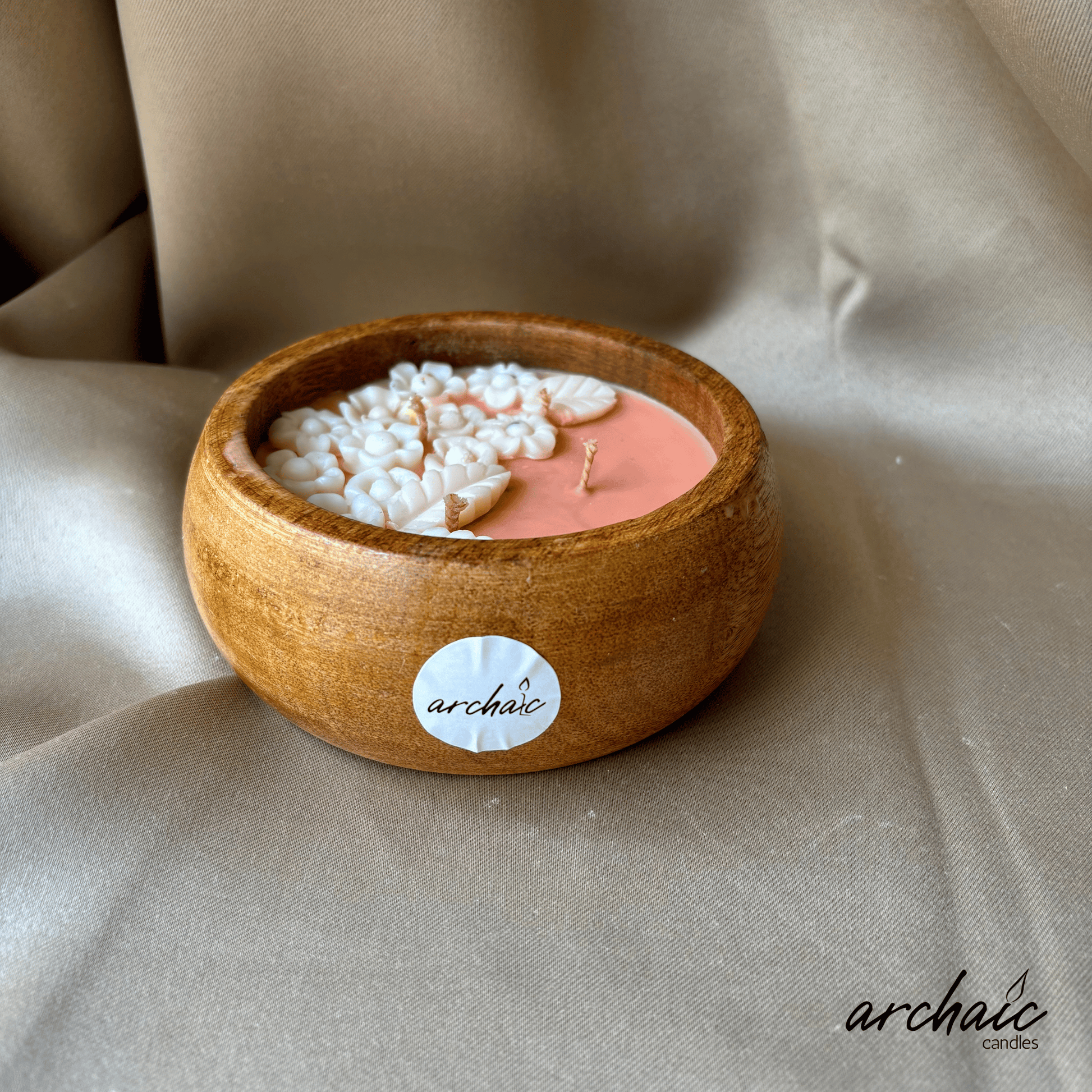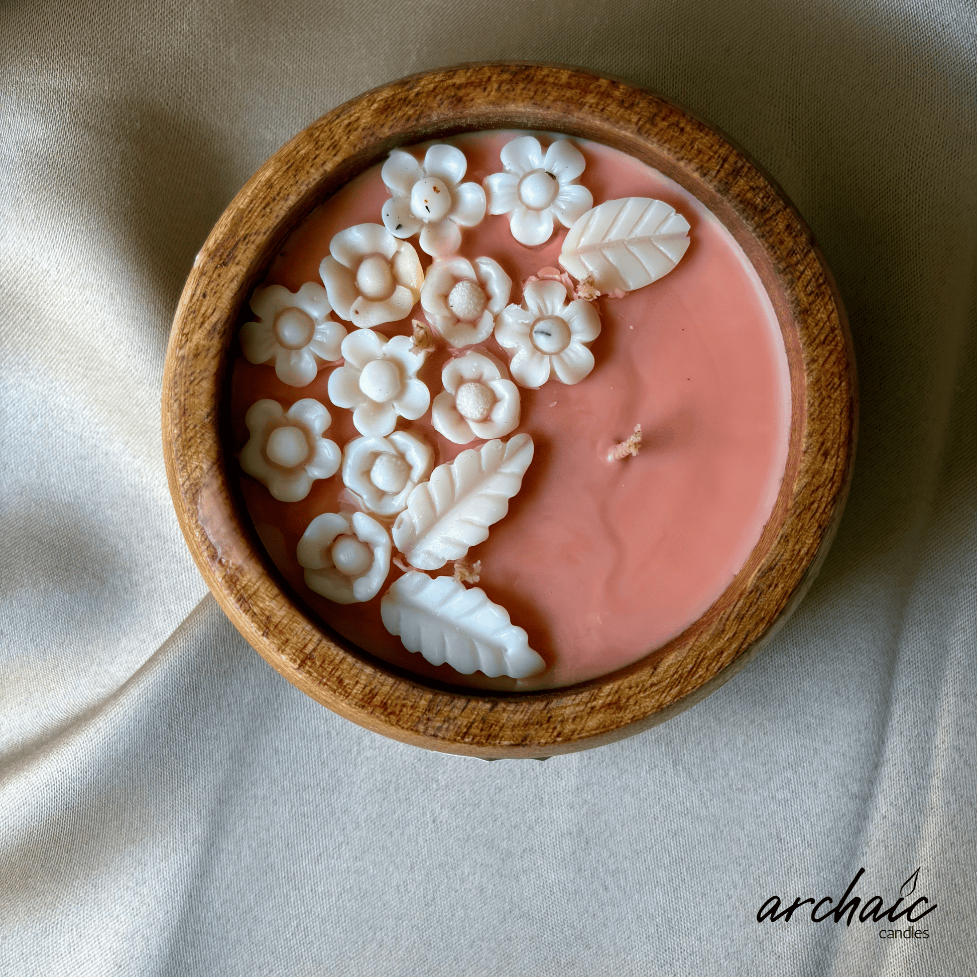 Wooden Peach Bowl White flower candle |Peach Blossom Glow| Pure soy wax candles